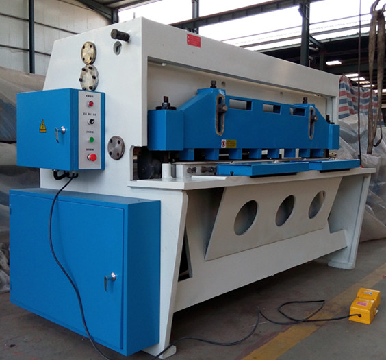 剪板機(英文名稱:plate shears;guillotine shear)是用一個刀片相對另一刀片作往復直線運動剪切板材的機器。是借于運動的上刀片和固定的下刀片,采用合理的刀片間隙,對各種厚度的金屬板材施加剪切力,使板材按所需要的尺寸斷裂分離。剪板機屬于鍛壓機械中的一種,主要作用就是金屬加工行業。產品廣泛適用于航空、輕工、冶金、化工、建筑、船舶、汽車、電力、電器、裝潢等行業提供所需的專用機械和成套設備。